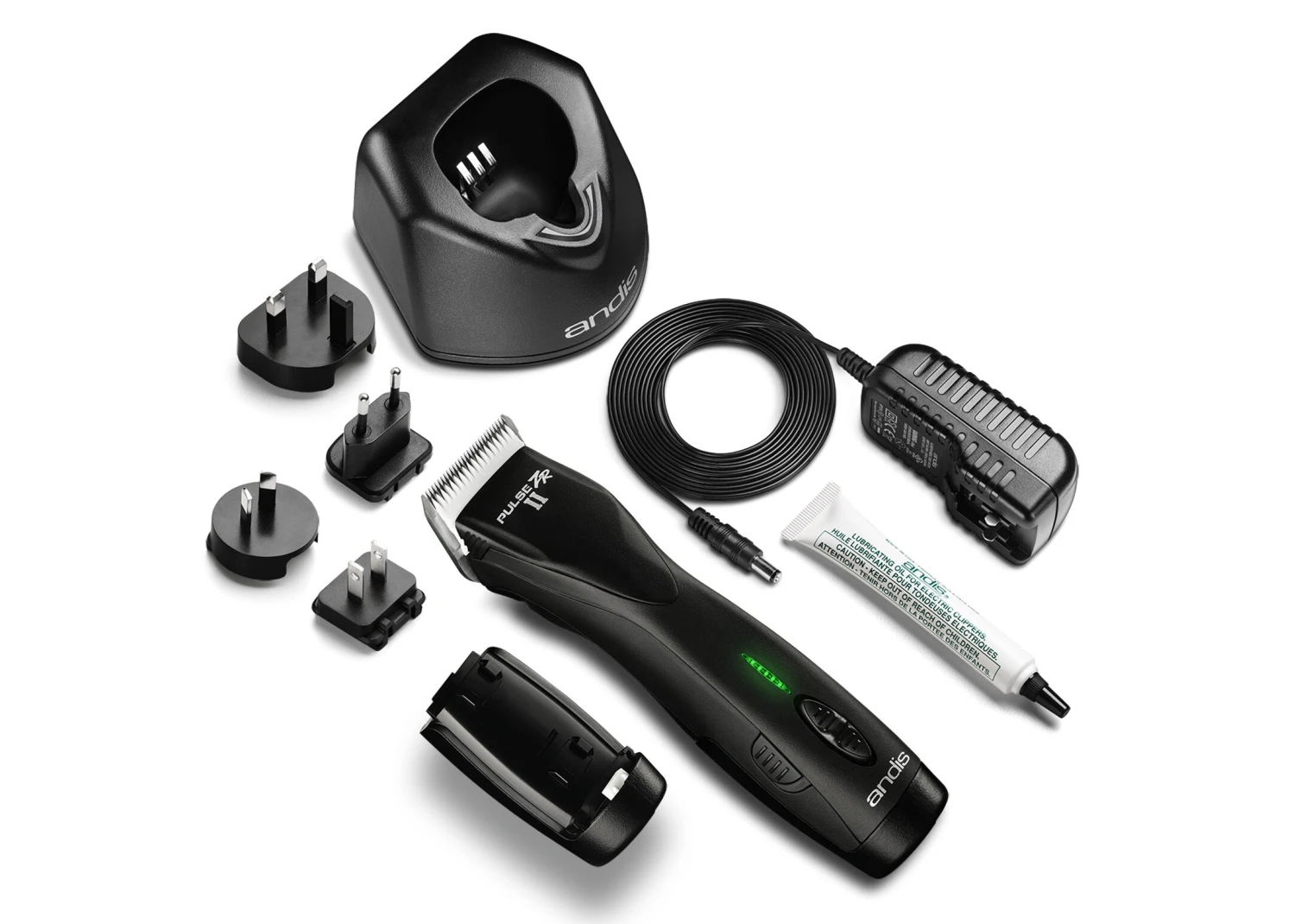 Heavy duty, cordless snap-on blade clipper with removable battery pack. The latest Lithium-ion technology delivers up to 2.5 hours run time on a single 2-hour charge. The powerful, 5 speed, rotary motor provides the power to get through even the most difficult coats. Supplied with two batteries, a premium charging stand, blade oil and comes complete with #10 blade