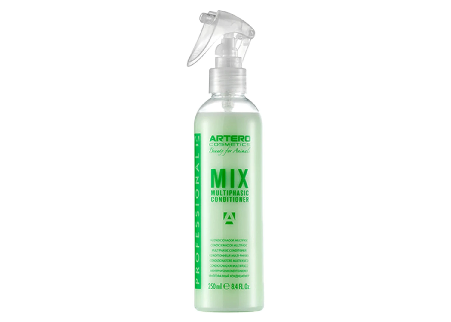 Mix is a leave in conditioner spray with anti-static properties for easy brushing. Aids de-matting and helps keep matt free between brushings. May also be used to boost volume in curly coated breeds. Mix leaves the coat with a unique softness, shine and perfume for a spectacular finish.