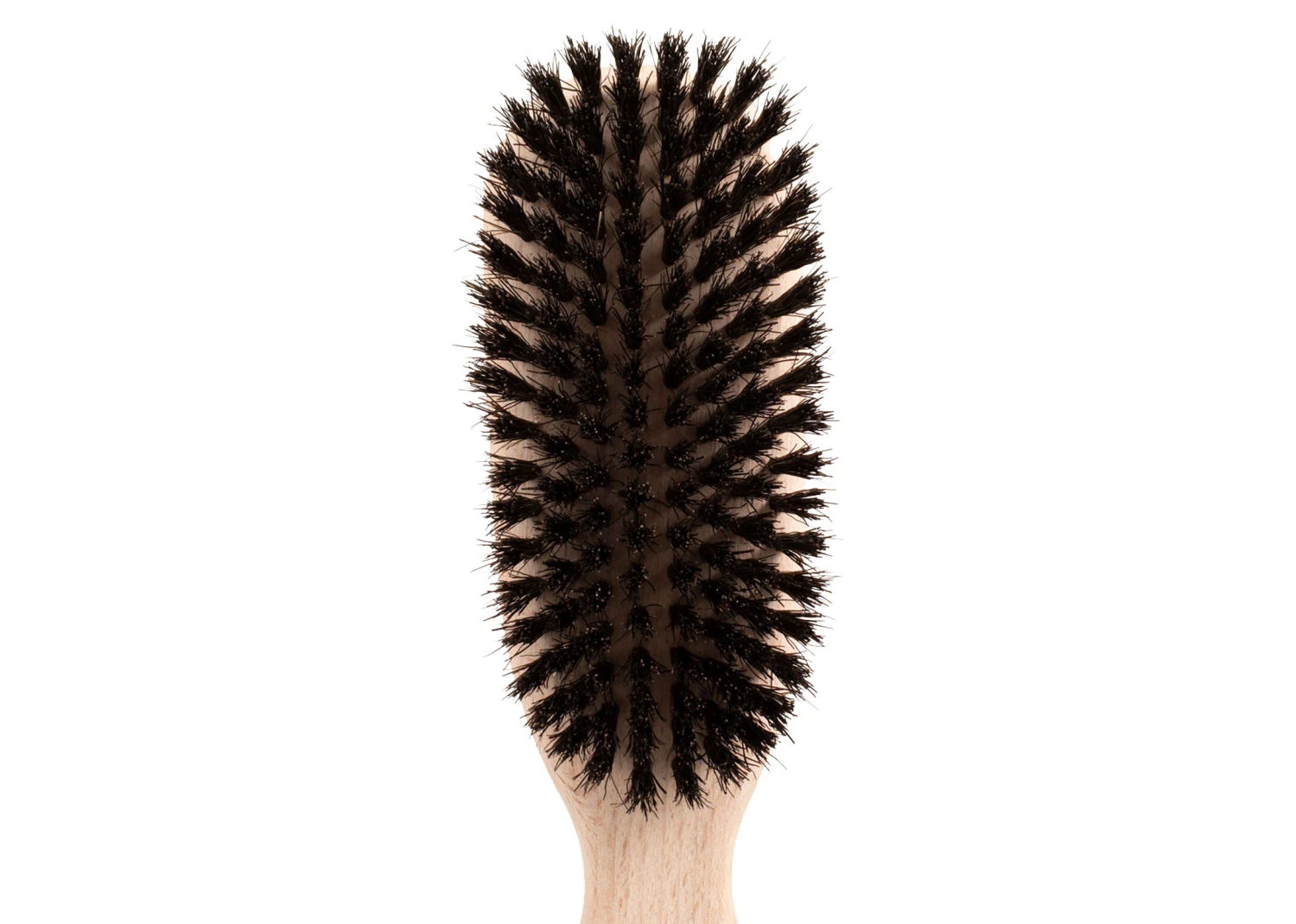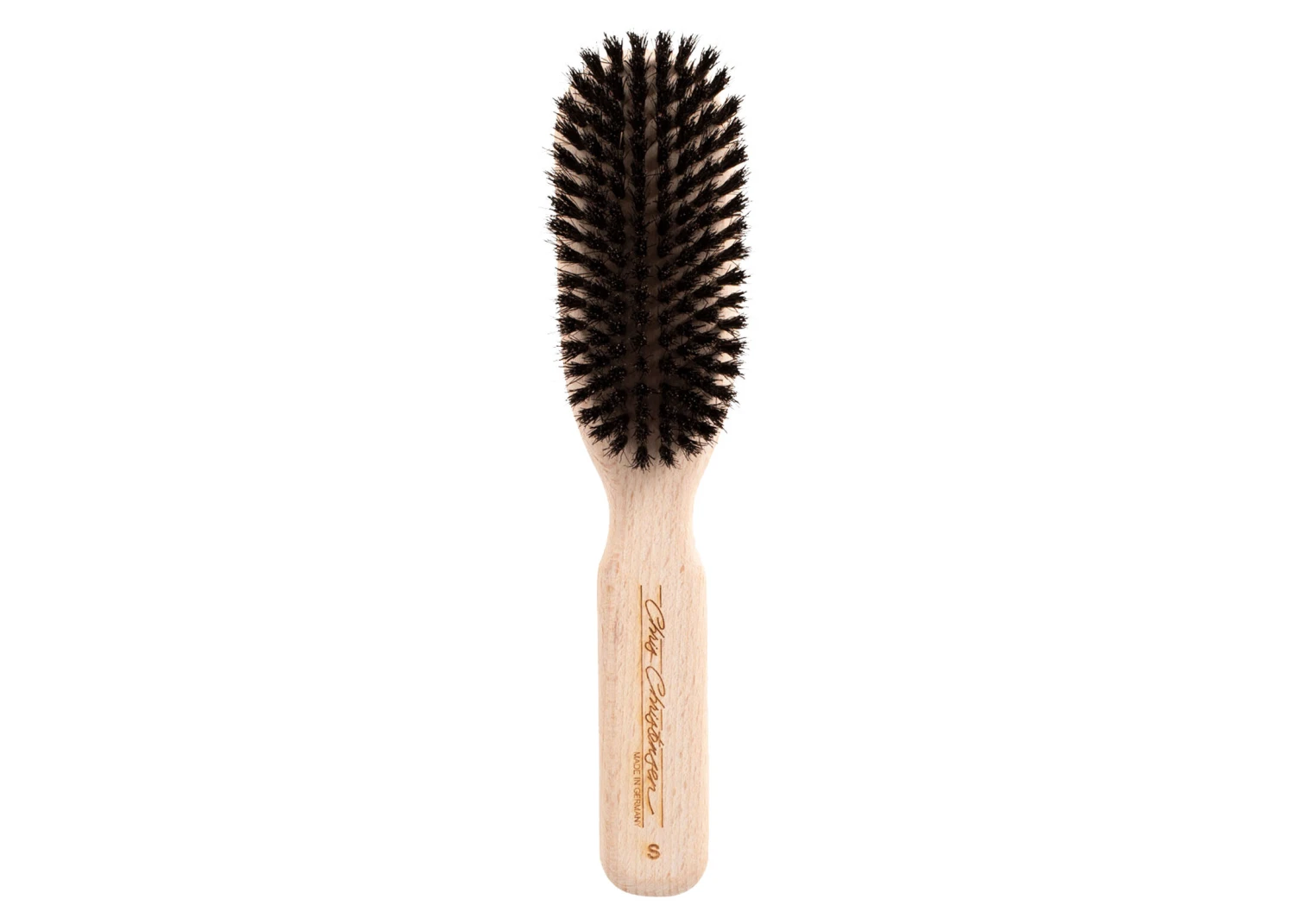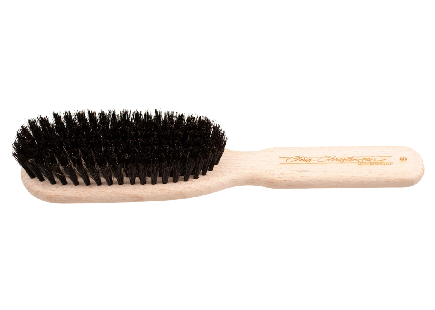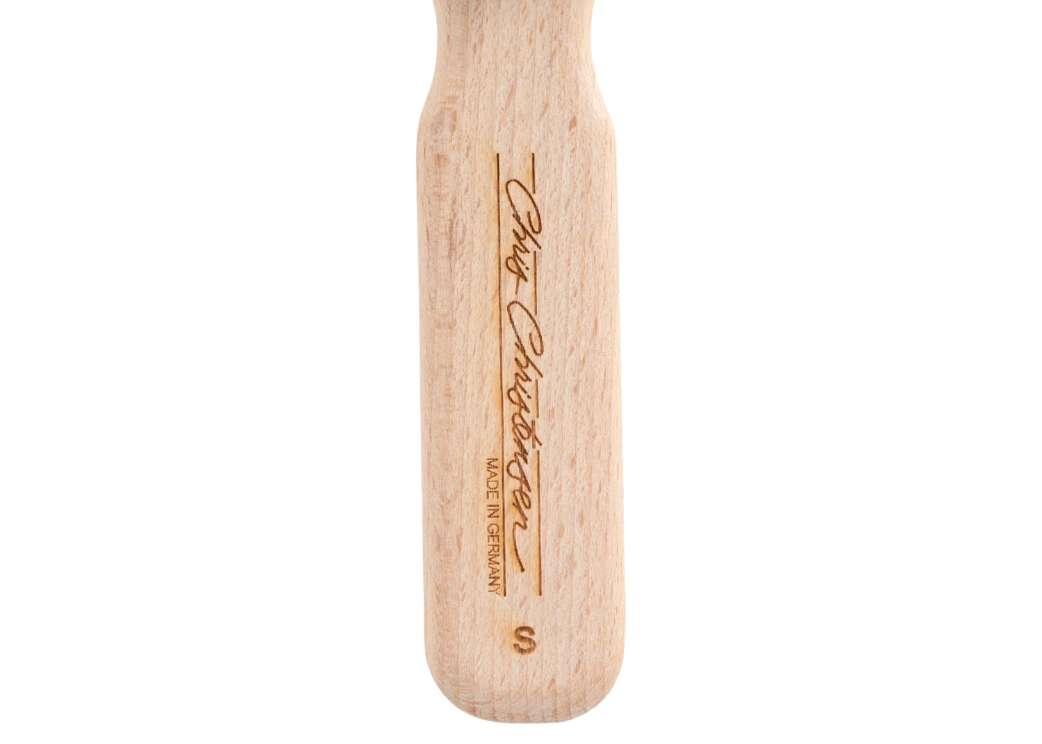 In front of you is the Natural Boar Bristle Tufted Soft Brush, the perfect tool for maintaining a beautiful and healthy coat! This Chris Christensen brush utilizes natural boar bristles arranged in a unique tufted pattern, which effectively stimulates follicles and enhances strength and shine from root to tip. Suitable for all coat types, it efficiently removes accumulated dander that can potentially cause damage. Moreover, it facilitates the even distribution of skin oils throughout each hair strand, resulting in a long-lasting and vibrant appearance for any dog’s coat. The lightweight Beechwood handle ensures comfortable usage, providing a stable grip in your hand.