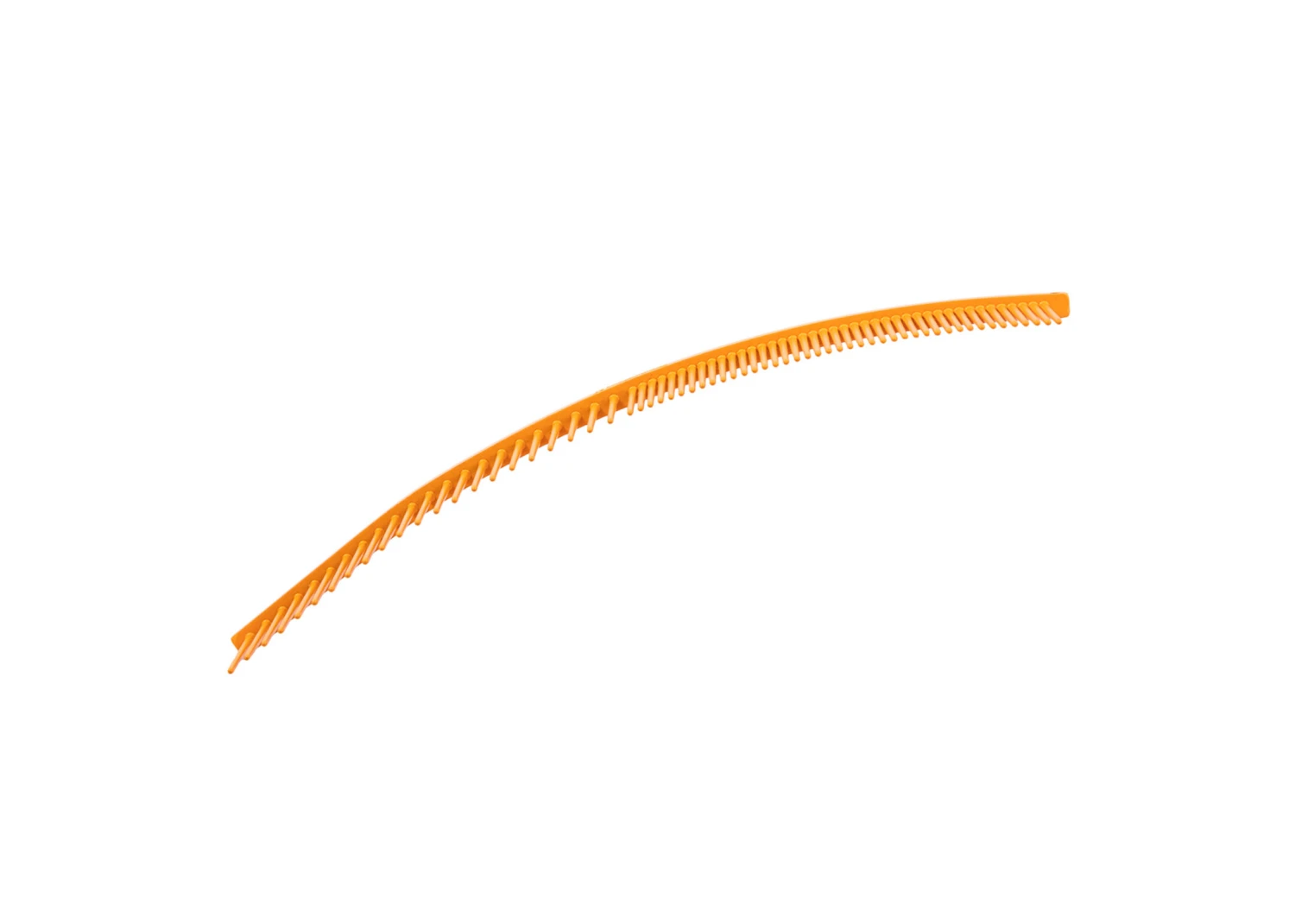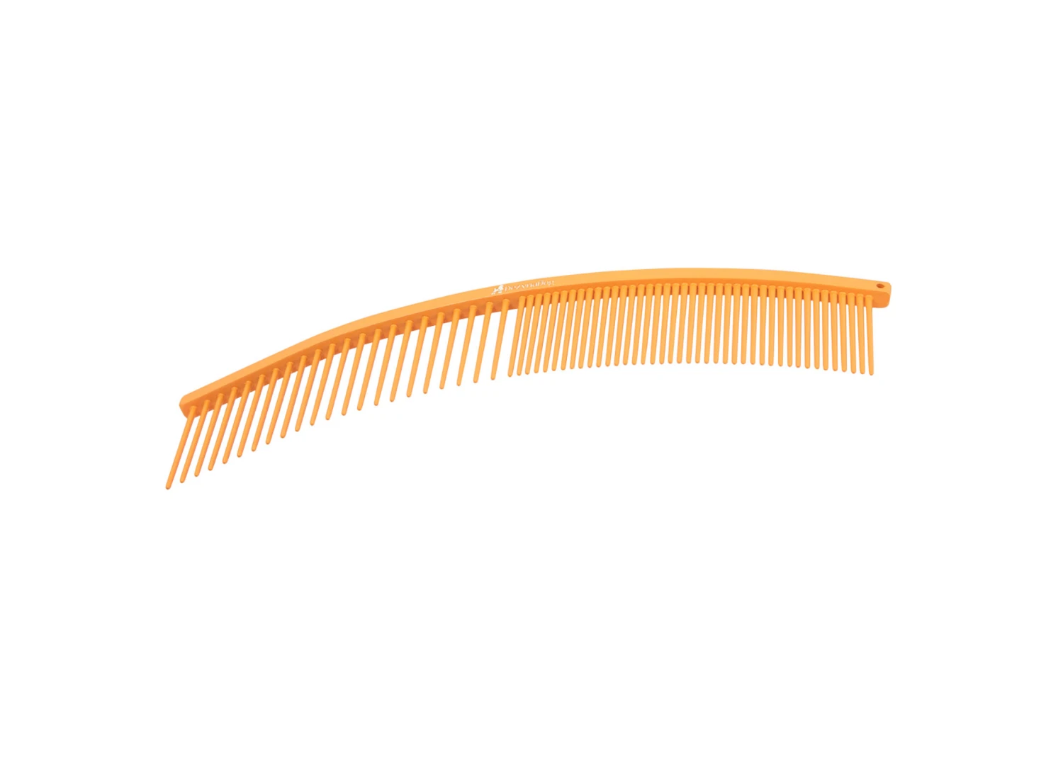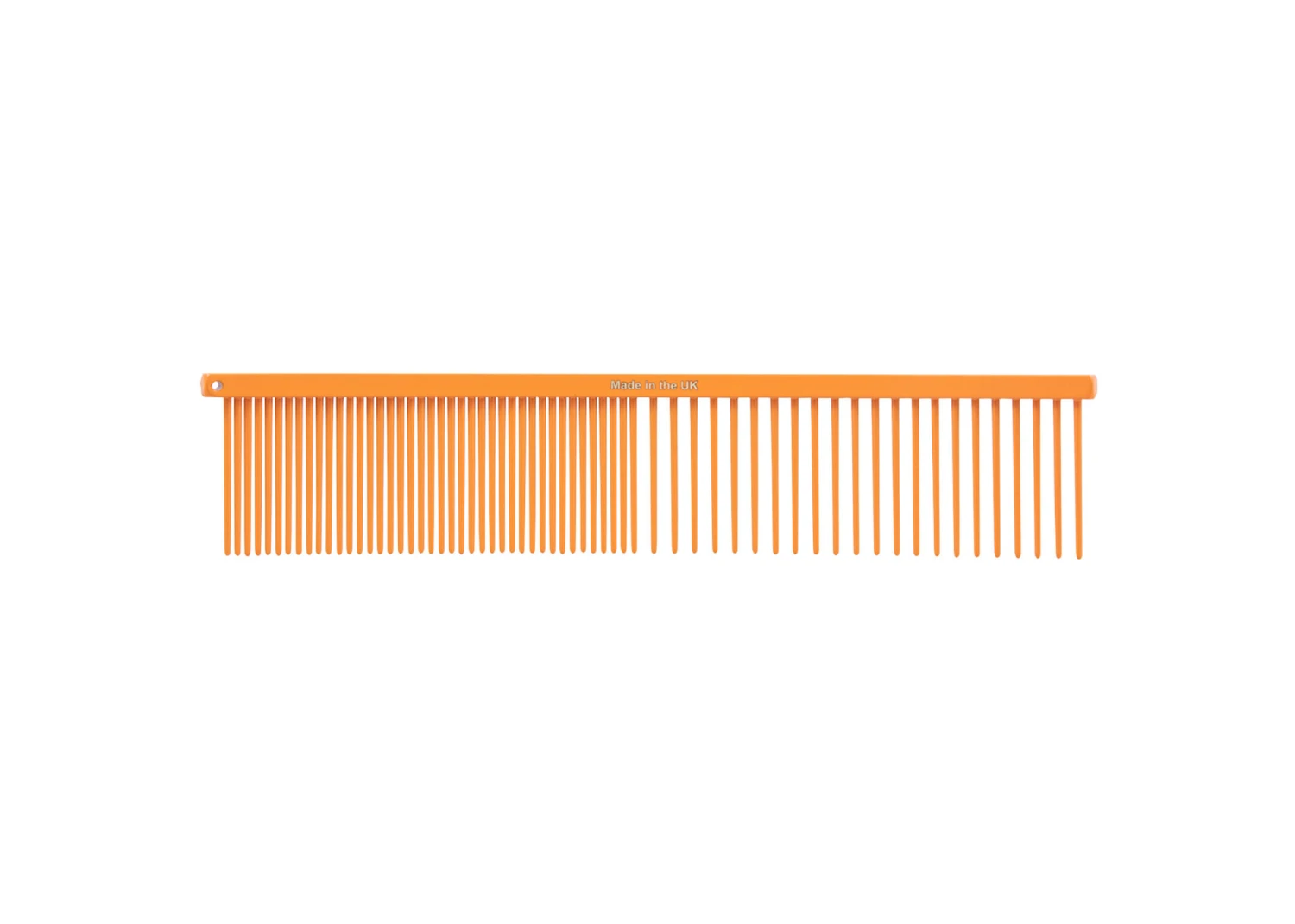 Dezynadog’s Ember Orange 50/50 19cm curved comb is the perfect tool for creating lift and volume in your dog’s coat. The teeth are spaced 50/50 and are made of a strong, yet lightweight material that glides through the coat effortlessly. These combs are also available in a variety of sizes and styles to suit your specific grooming needs. Made in the U.K.