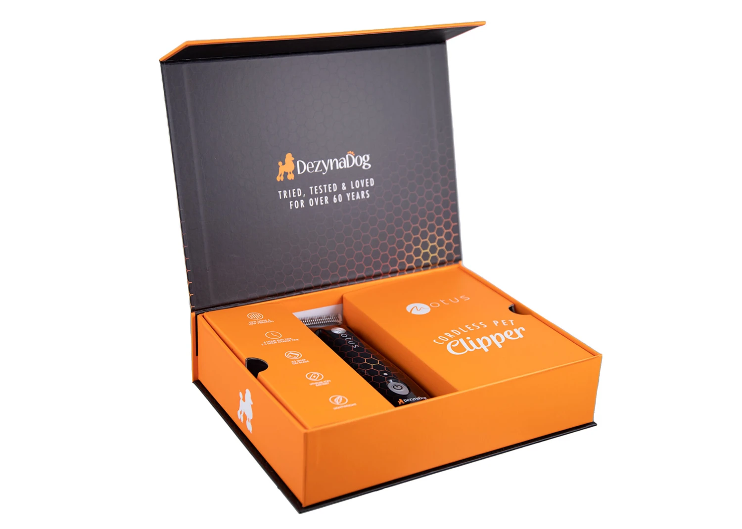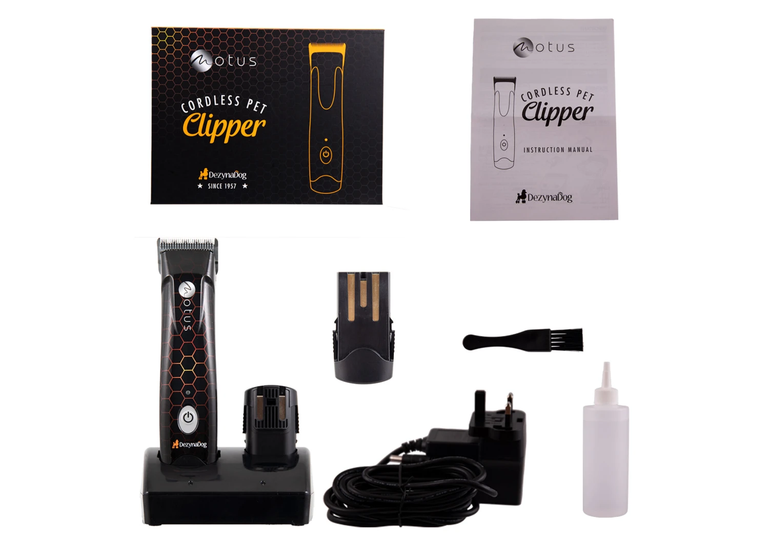 Introducing the revolutionary Dezynadog MOTUS: a professional clipper with heritage, history, and legacy. Uniquely constructed in Northern Ireland, the MOTUS was designed to be the perfect combination of style and function while providing superior performance.Â