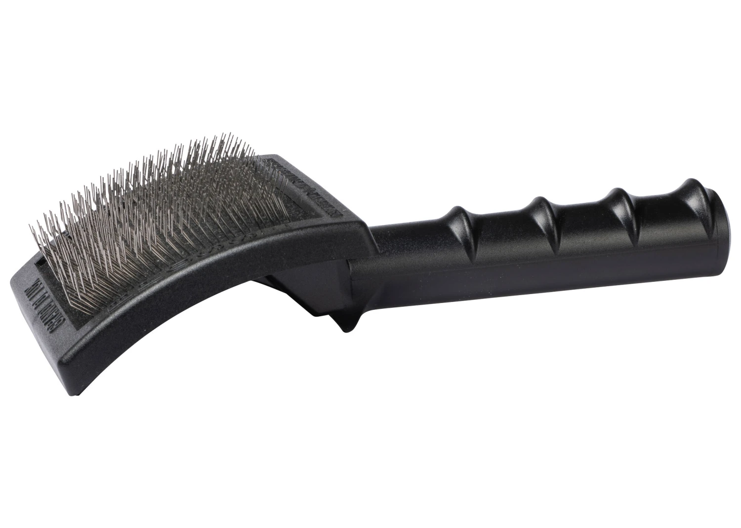 Wiry coats– Brush in the direction of the coat growth, then against it if necessary to remove mats and dead hair. If the coat is matted, use this slicker brush in combination with the Show Tech Mat Buster Dematting Comb.