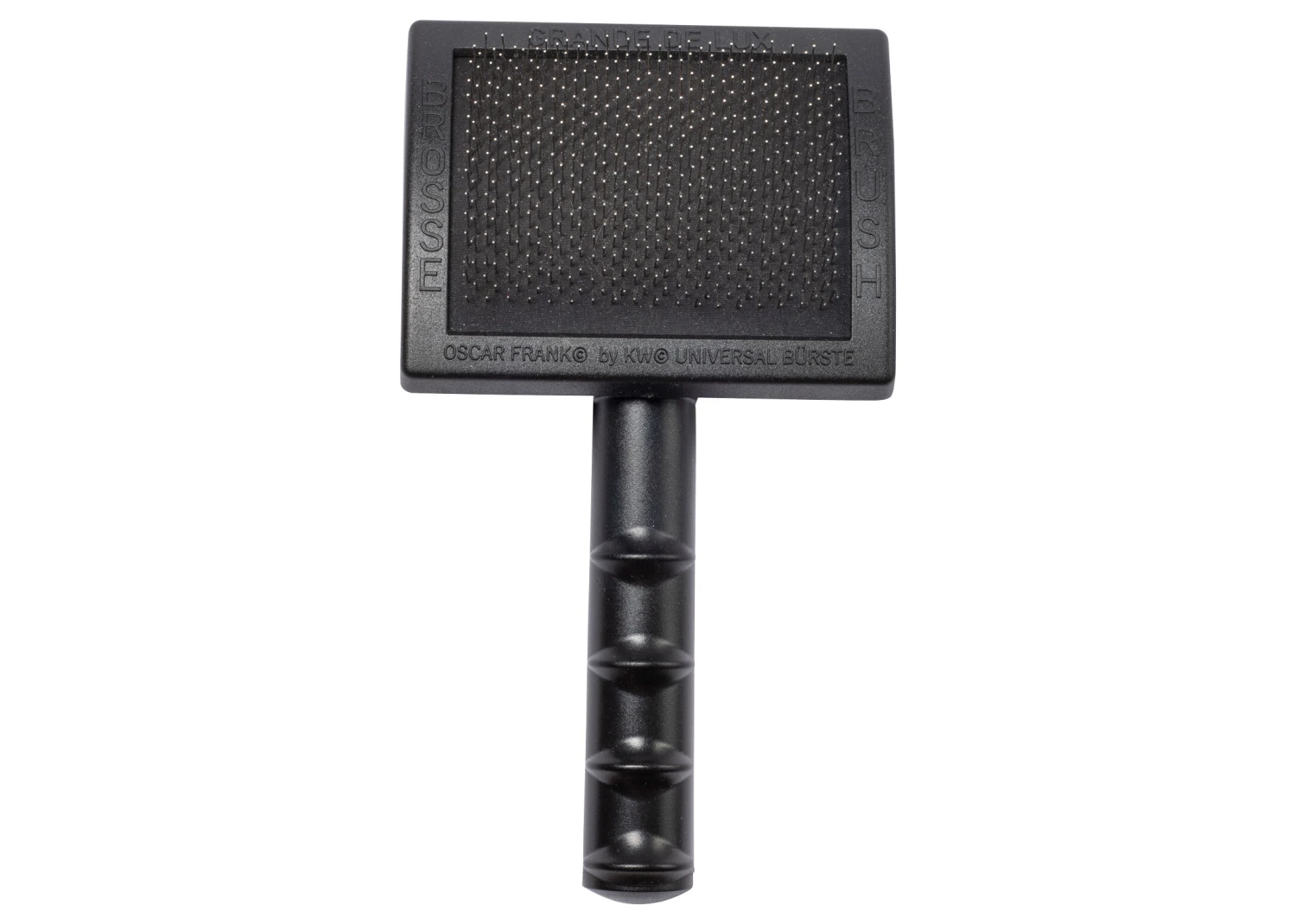 These brushes are a true classic among the slickers. Thanks to their eye-catching packaging and their authentic, German design, they have been a popular product for many years now. The Frank’s Universal Grande de Luxe Large Slicker has a slightly flatter brush pad and can be used for every dog breed that isn’t short-haired. Because of the firmer pins, this slicker is most suited for dogs with thicker coats and coats that have more underwool or tangles.
