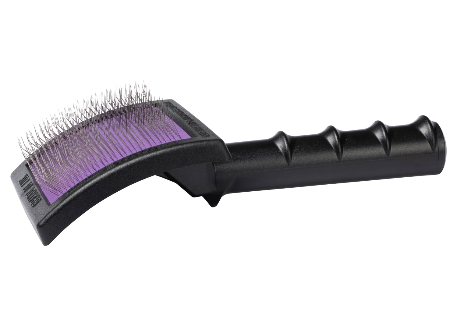 Wiry coats– Brush in the direction of the coat growth, then against it if necessary to remove mats and dead hair. If the coat is matted, use this slicker brush in combination with the Show Tech Mat Buster Dematting Comb.