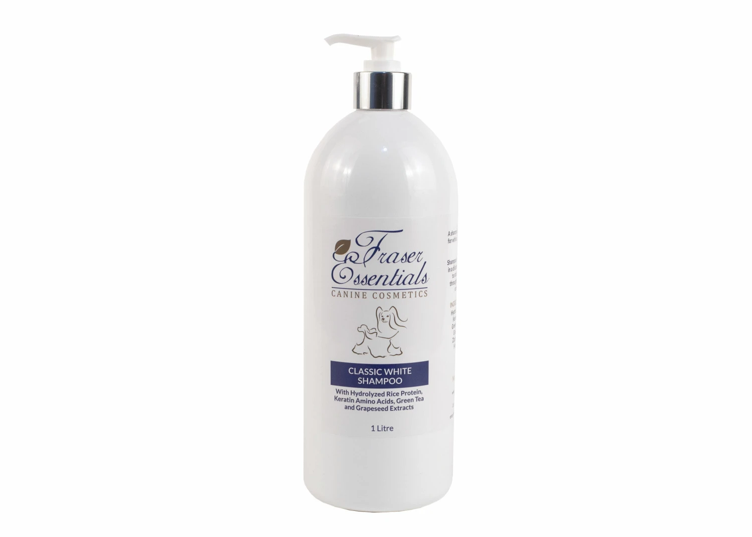 A shampoo specifically formulated for white, silver or light coloured dogs. Formulated with a nourishing base to alleviate the dryness that some whitening shampoos cause. This shampoo contains no bleaches so it won’t bleach or affect other colours. Suggested to be used in a diluted form. Apply directly to stubborn stains or areas which need a little more sparkle.