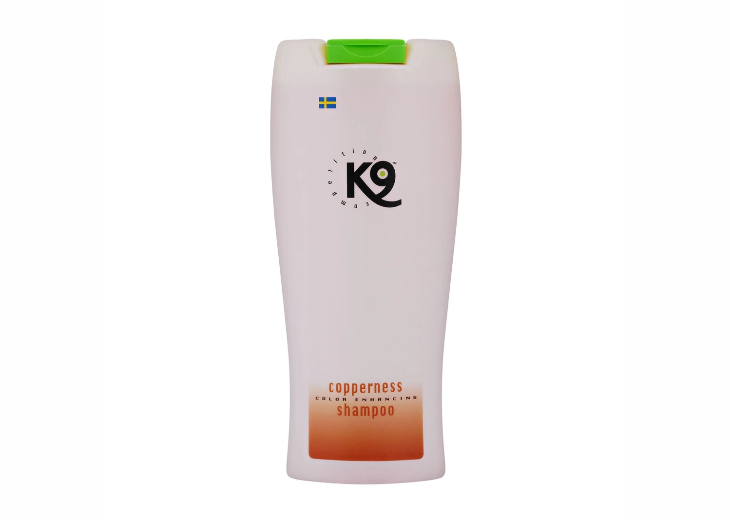 Copperness Shampoo Neutralizes discolouring and brings out the natural deep red-brown color in the coat. The balanced formula with 100% Aloe Vera, D-Panthenol and wheat protein, acts calming on sensitive skin and provides optimal moisture balancet. It’s economical in use and makes coat care easy.