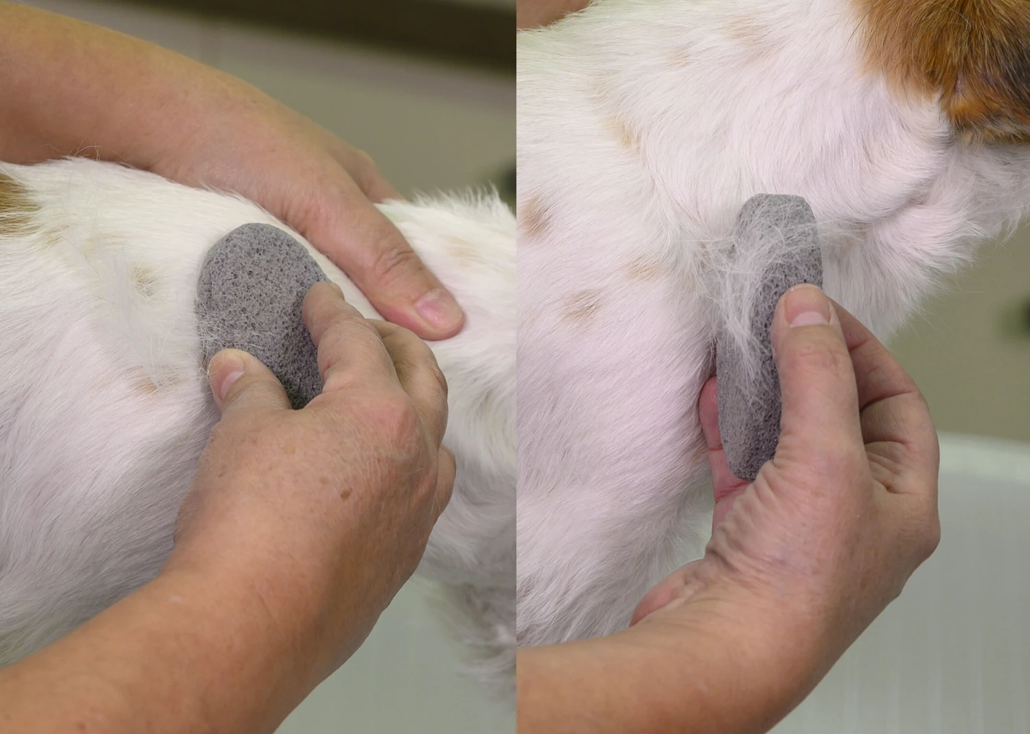 These grooming stones may be used to strip the coat without the danger of cutting or breaking the hair, or can also be employed as a finishing stone to tidy up loose hairs. What makes these stones unique is they are designed to be used on white or grey coats and unlike traditional stripping stones will not leave black dust in light coloured coats.