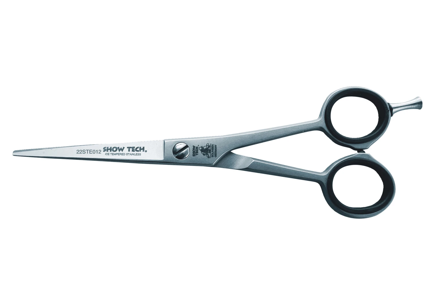 Show Tech Scissors are designed and produced specifically for dog groomers. Hand made in Solingen, Germany, each scissor is meticulously hand crafted in a 150 step manufacturing process. All models are forged from nickel-free stainless steel and ice tempered to ensure maximum hardness, this permits the creation of an ulta sharp cutting edge. The micro serrations on the blades guarantee an accurate and perfectly smooth cut which lasts. Show Tech Scissors are high quality professional tools at incredible value for money prices.