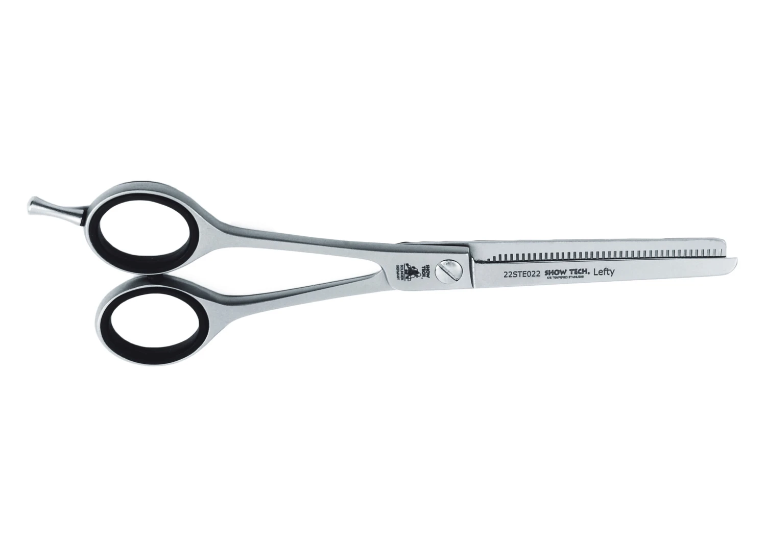 Show Tech Scissors are designed and produced specifically for dog groomers. Hand made in Solingen, Germany, each scissor is meticulously hand crafted in a 150 step manufacturing process. All models are forged from nickel-free stainless steel and ice tempered to ensure maximum hardness, this permits the creation of an ulta sharp cutting edge. The micro serrations on the blades guarantee an accurate and perfectly smooth cut which lasts. Show Tech Scissors are high quality professional tools at incredible value for money prices.