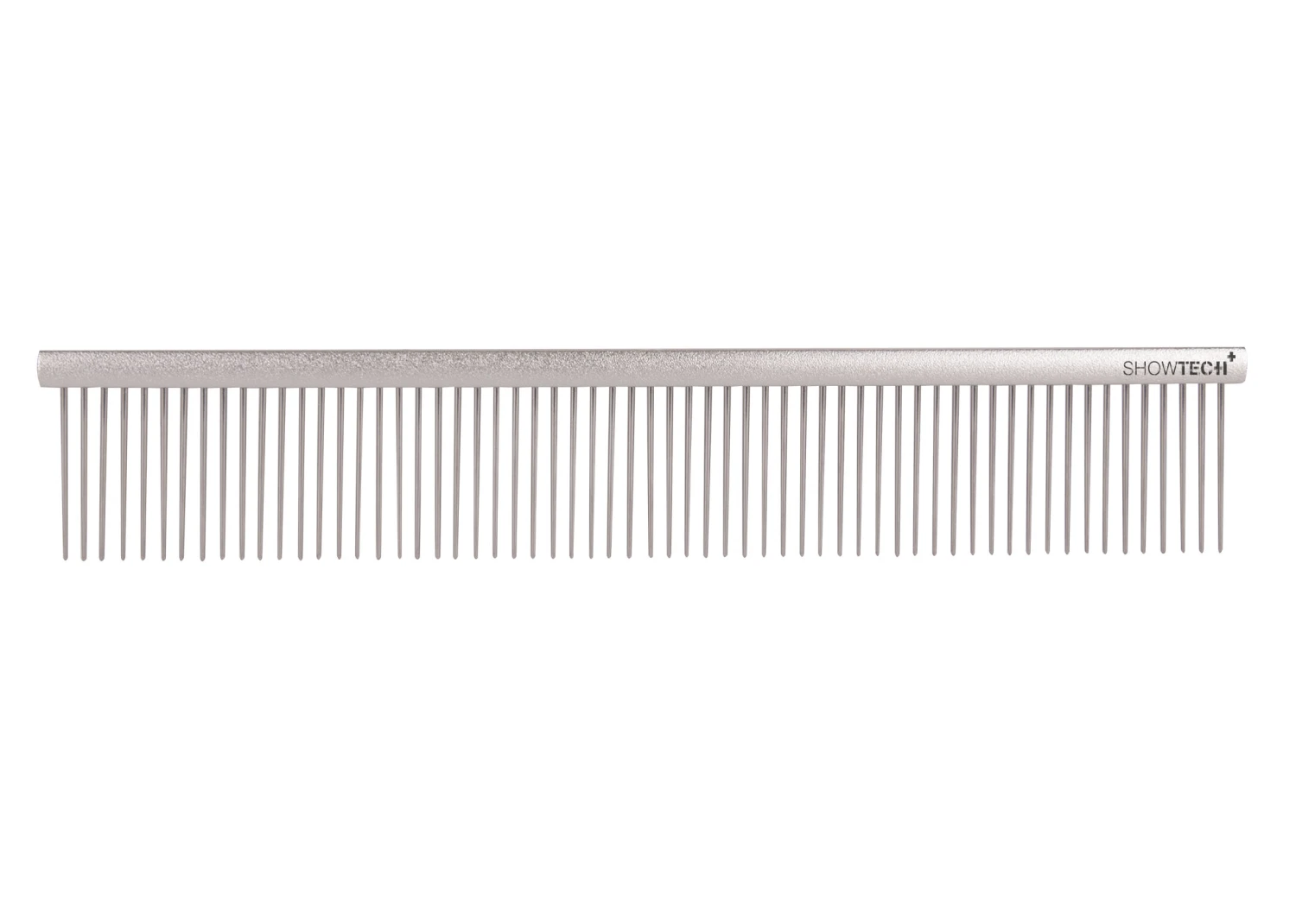 The Show Tech + Featherlight combs are the ultimate in professional combs for styling and fluffing. Made from aluminium with polished stainless steel teeth these combs are the finest and lightest available. Each tooth is perfectly formed with the tip rounded to prevent damage to coat and skin. Available in 3 sizes: 11,5 cm long with 19 mm pins, 25 cm long with 36 mm pins or 28 cm long with 42 mm pins.