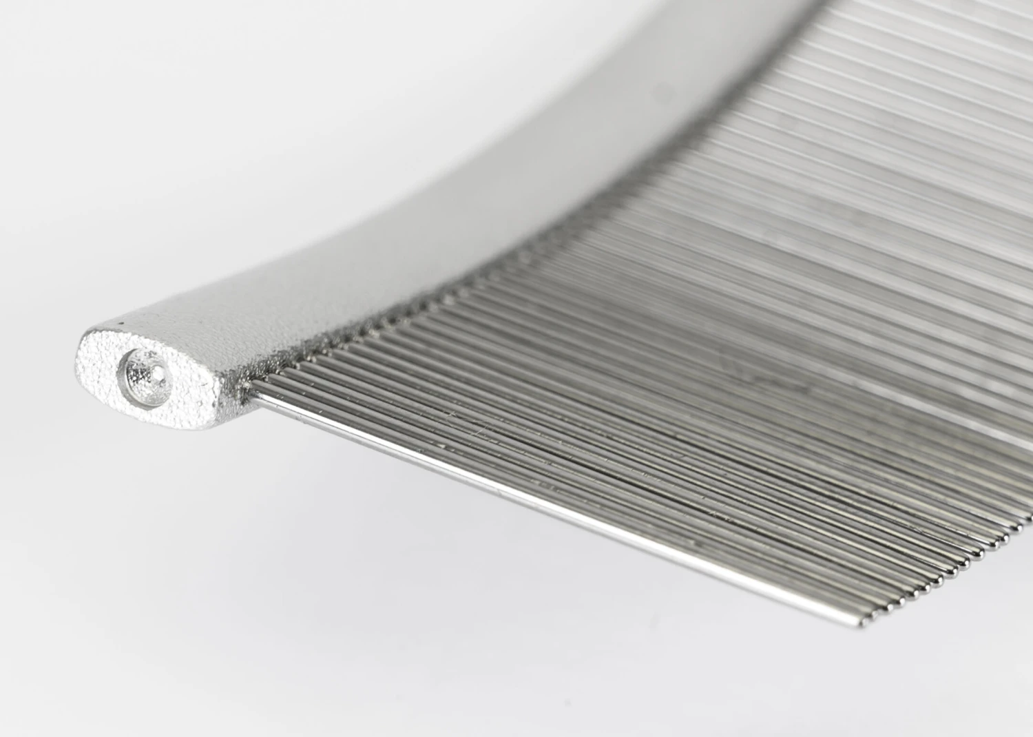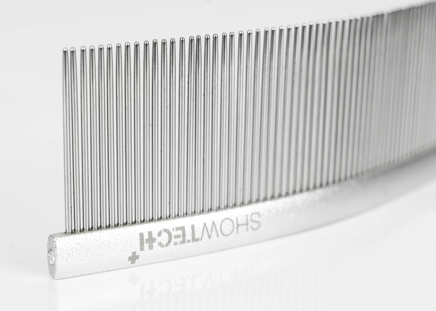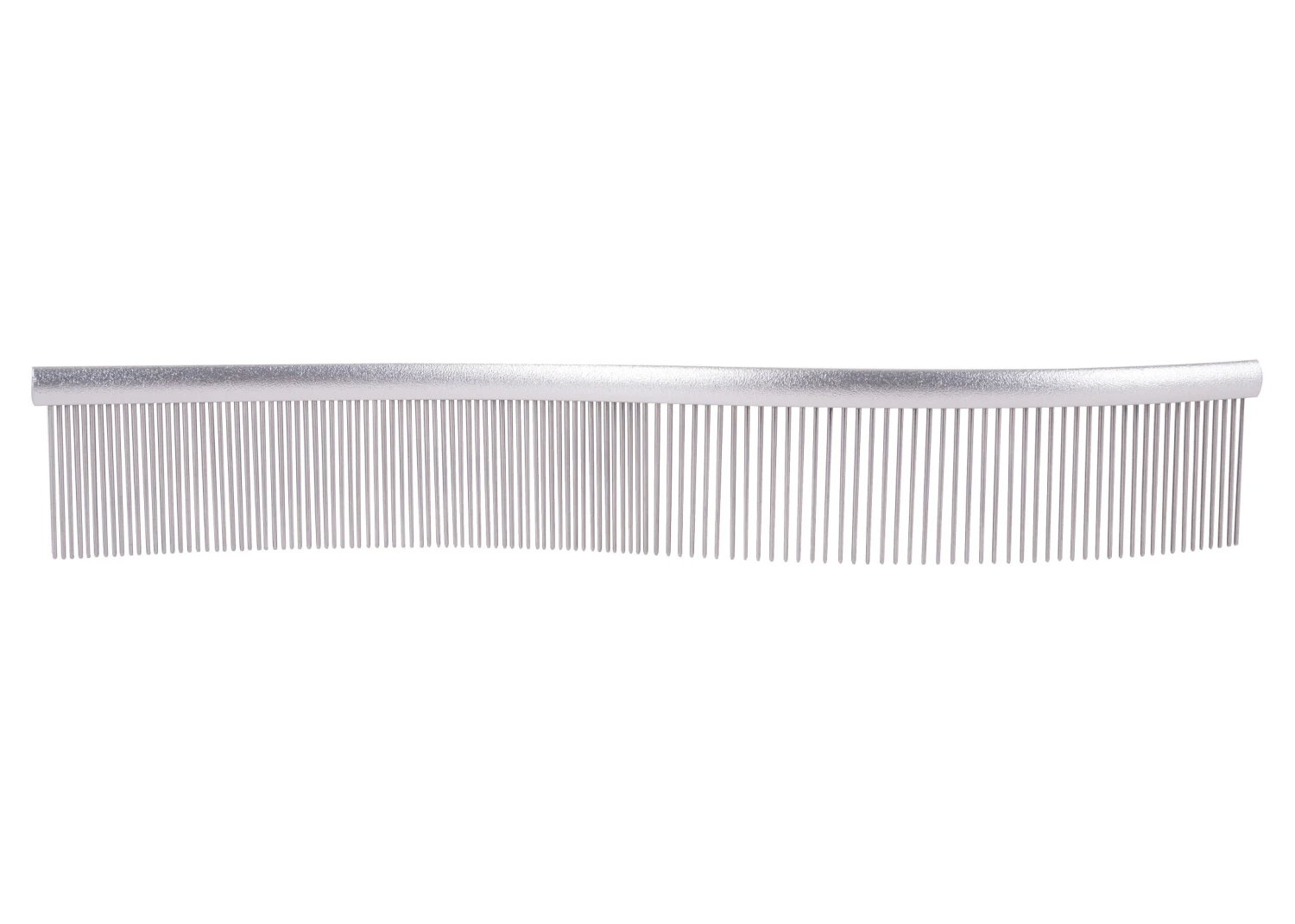 With its curved back and ultra-light aluminium handle, its long pins allow you to comb the most difficult parts to reach and accentuate the natural curves of the dog. A real must-have.