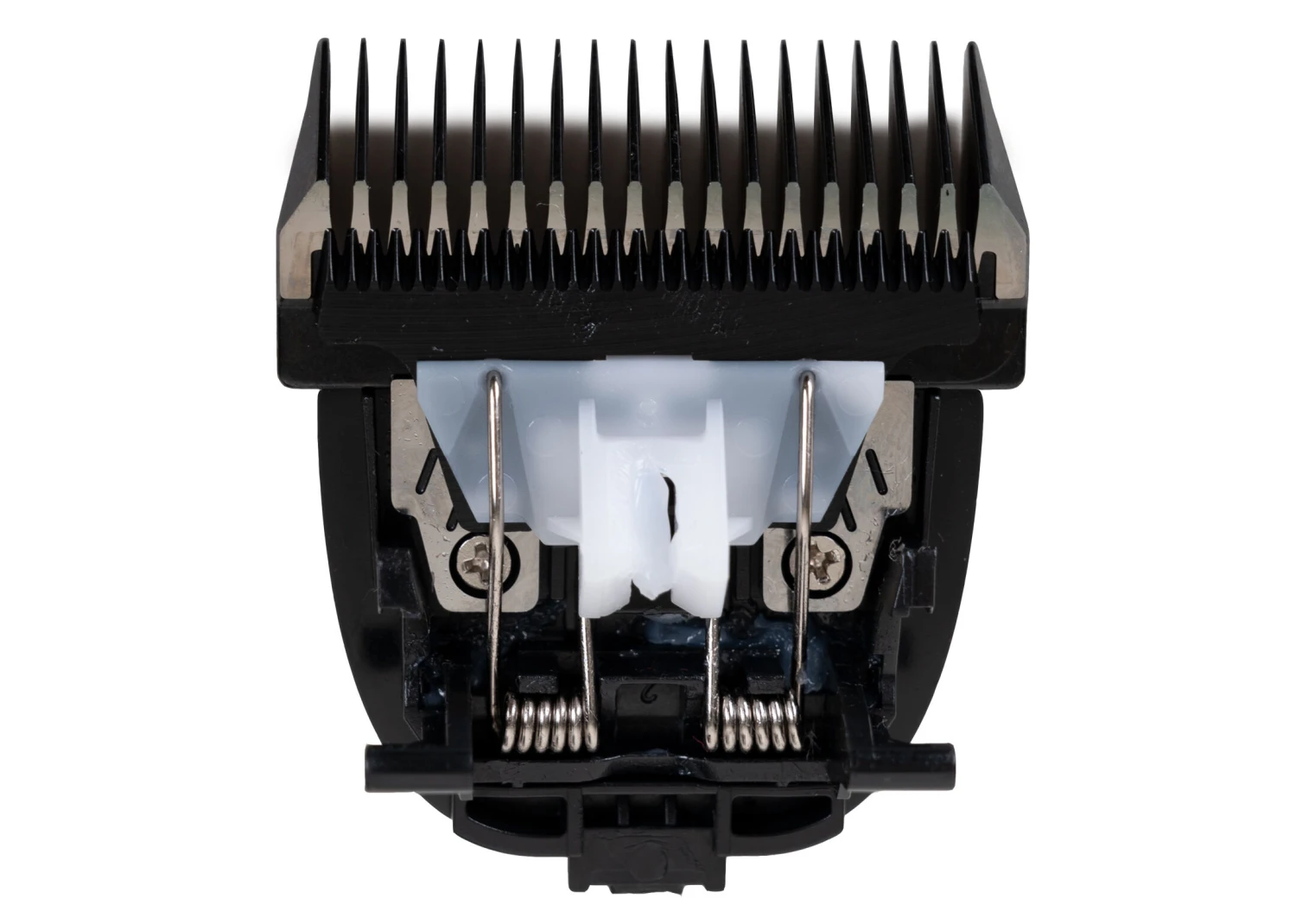 Place the clipper blade on the machine by first positioning it centrally and aligned on the clipper, then push it down until it clicks into place.Â
