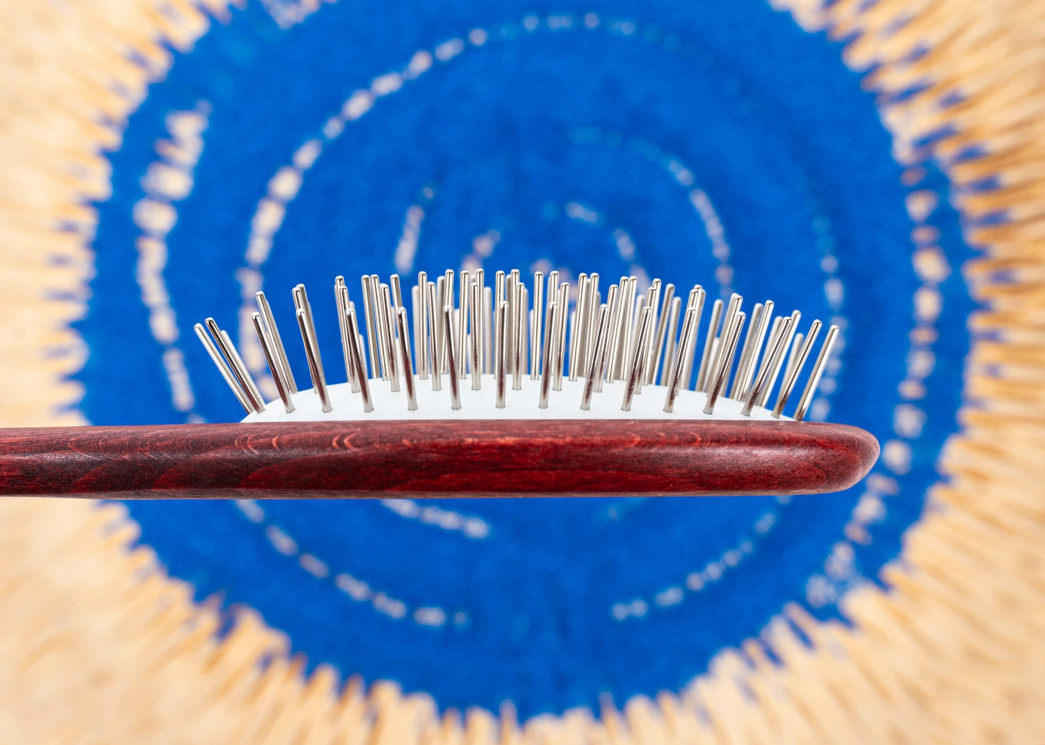 This special pin brush from Show Tech features thicker, more widely spaced pins and is ideally suited to breeds with dense or double coats. The smooth, rounded tips of the pins effortlessly penetrate the thicker hair and aid the removal of tangles.
