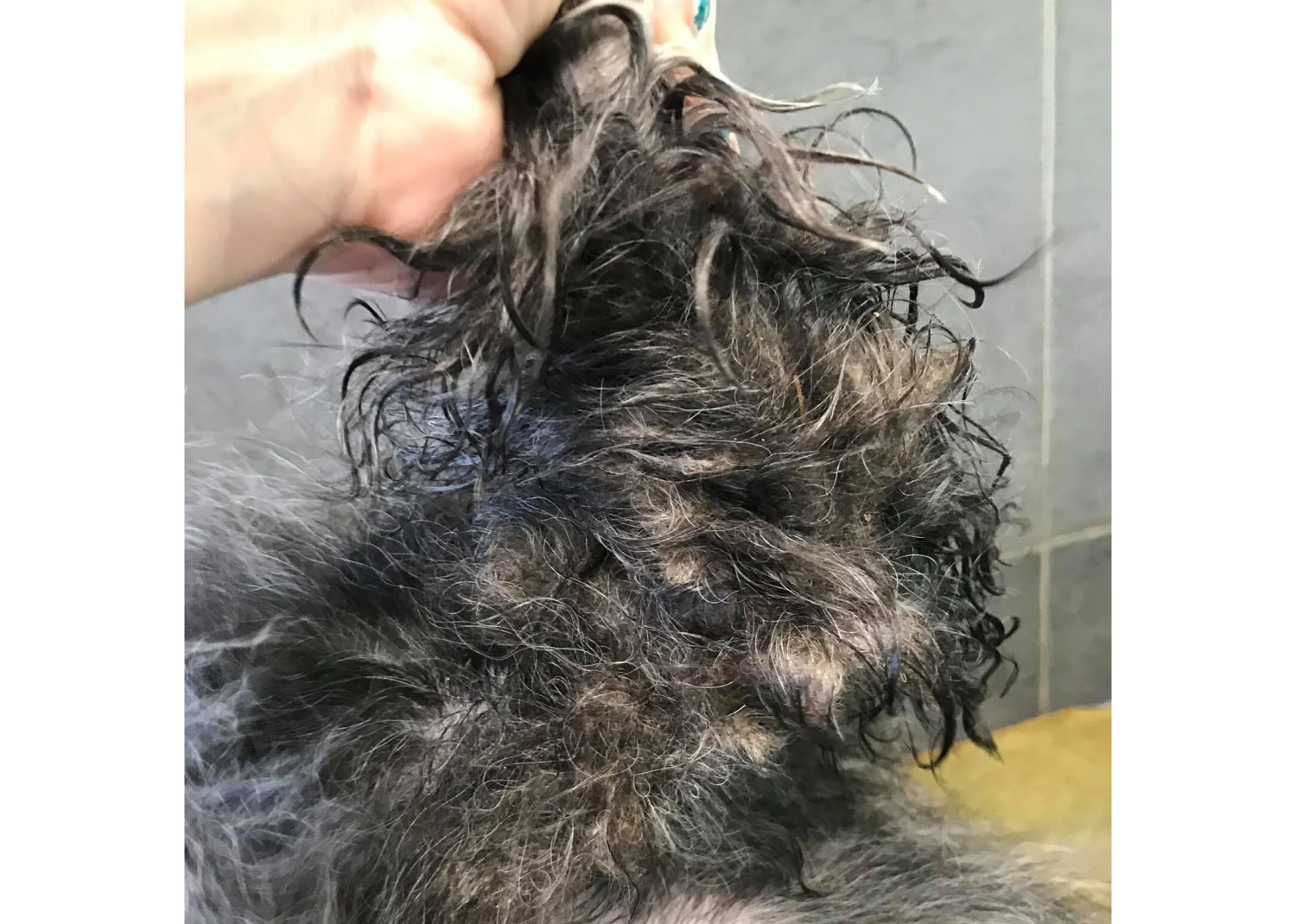 - Can also be used on a dry coat, for example at a dog show. Line brush the coat (brush the coat in layers) and spray the product between the layers.