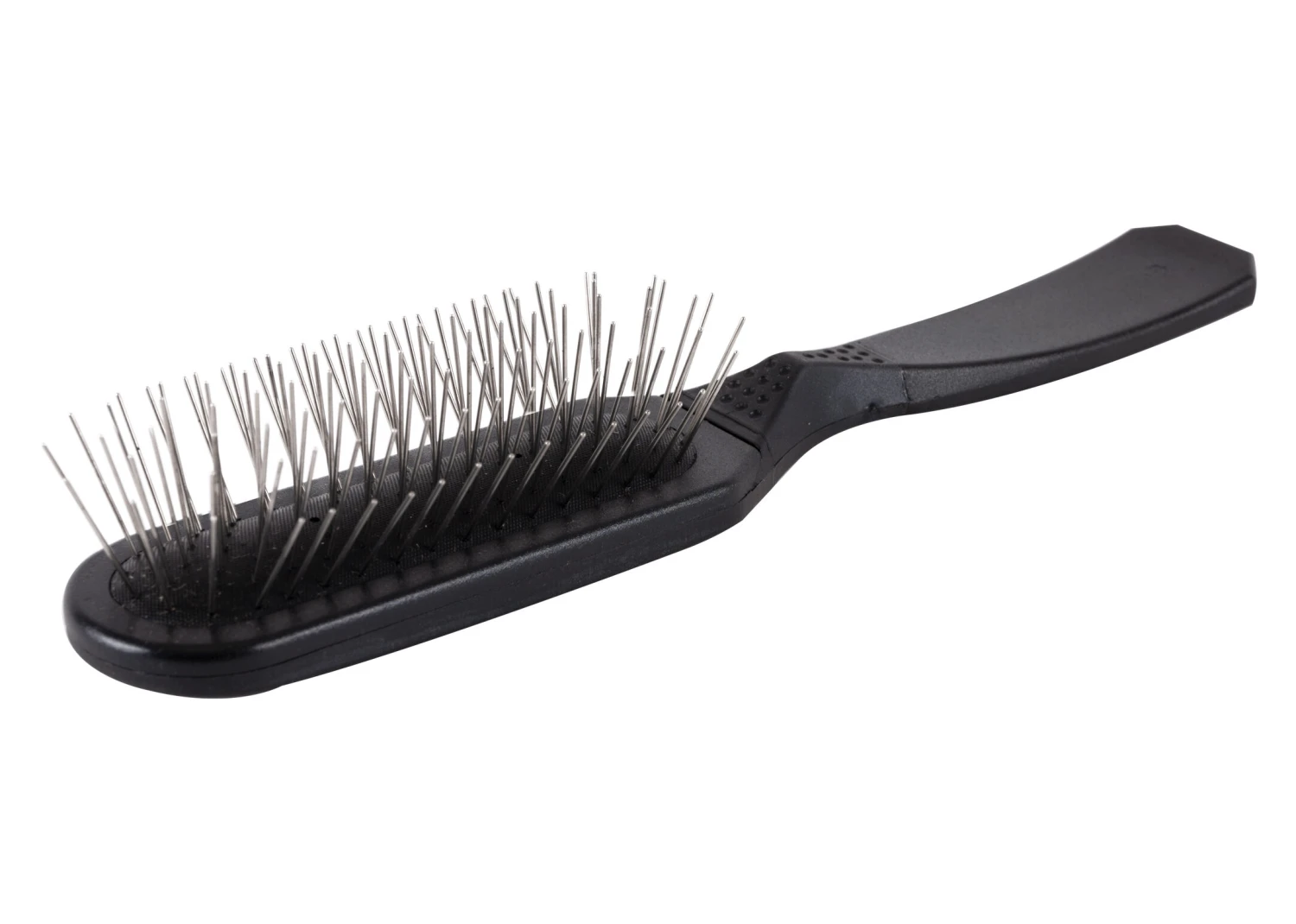 Instructions for use: Long coats-Gently brush with a light, long stroke, brushing beyond the ends of the hair tip to avoid static and breakage. For best results brush the hair in layers. Start at the bottom by parting the coat horizontally and holding the un-brushed portion up with your free hand. Work methodically upwards, keeping your wrist straight to avoid contact with the dogs skin. Curly coats-Brush in the direction of coat growth and then against it using light, long strokes. Harsh coats-Brush the coat in the direction of coat growth then against if necessary to remove mats and dead hair. Pay special attention to areas that are prone to matting, like behind ears, on the loins and under the legs. Use a coarse comb to check for any remaining mats after brushing. The Ultra Pro pin brush is ideal for use after bathing while blow drying the coat. Use light, long strokes with and against the direction of coat growth. Brush slowly to avoid static build-up. If the coat is matted, use the Ultra Pro pin bush in combination with a Matbuster de-matting tool. To prevent mats and tangles, the dog’s coat should be regularly bathed, treated with a conditioner and brushed daily.