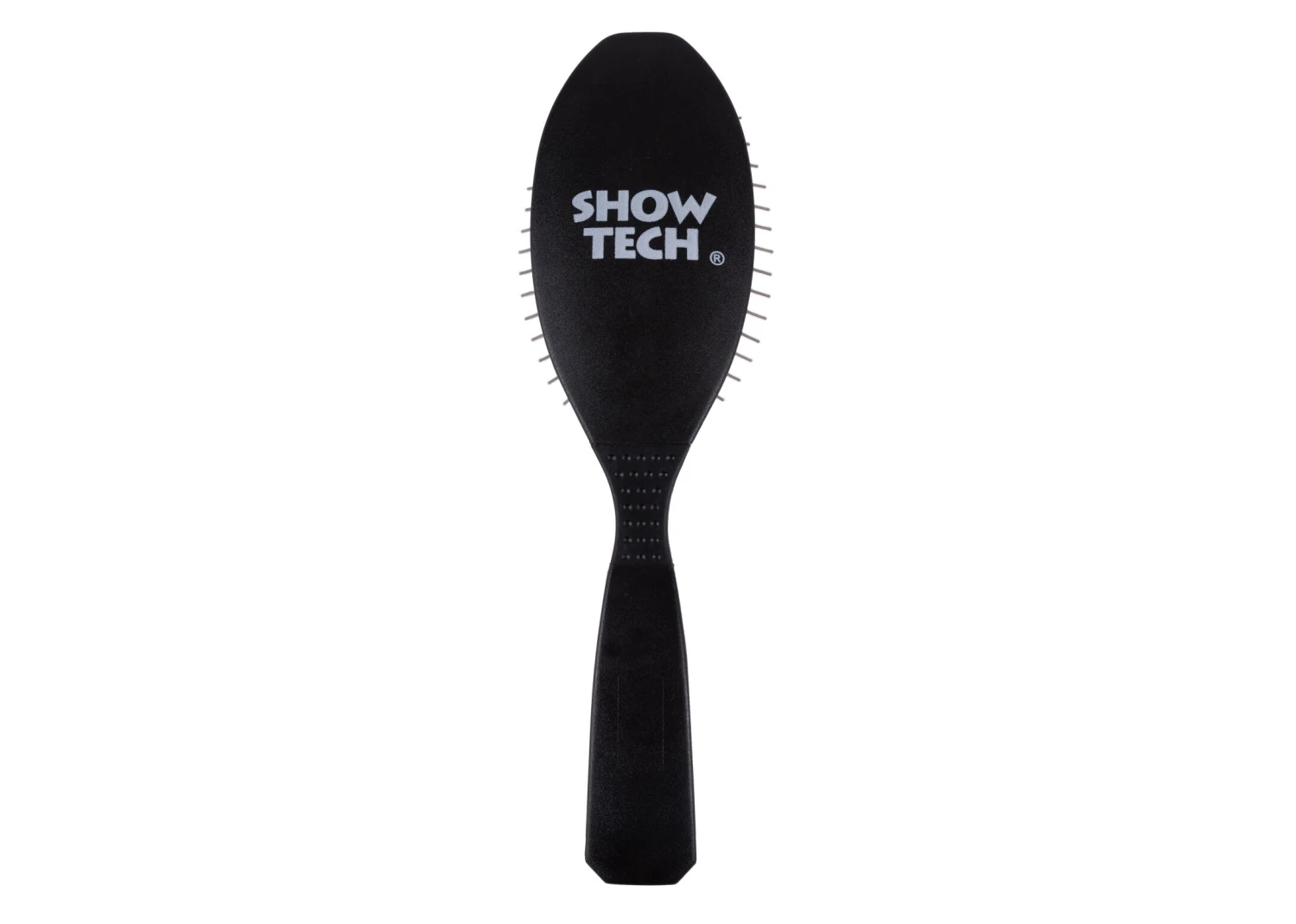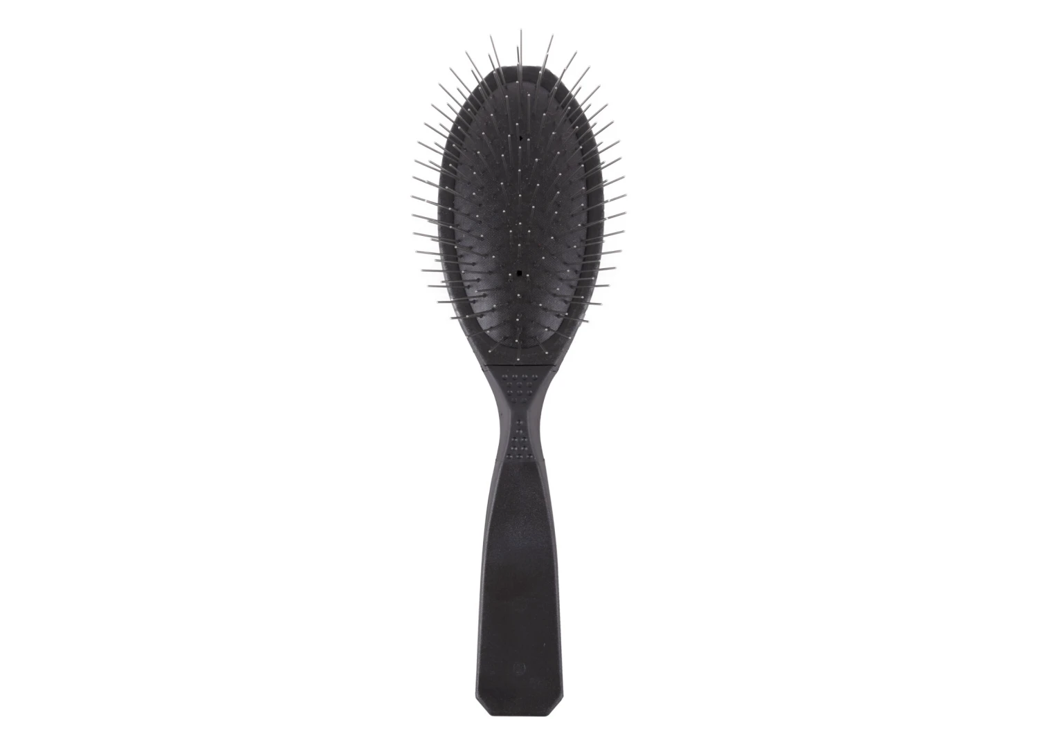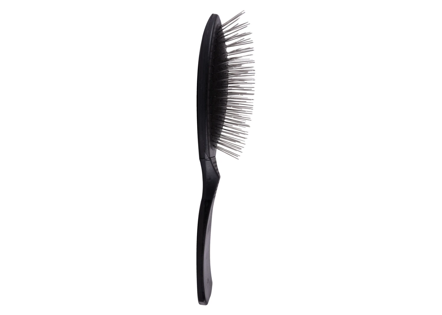Instructions for use: Long coats-Gently brush with a light, long stroke, brushing beyond the ends of the hair tip to avoid static and breakage. For best results brush the hair in layers. Start at the bottom by parting the coat horizontally and holding the un-brushed portion up with your free hand. Work methodically upwards, keeping your wrist straight to avoid contact with the dogs skin. Curly coats-Brush in the direction of coat growth and then against it using light, long strokes. Harsh coats-Brush the coat in the direction of coat growth then against if necessary to remove mats and dead hair. Pay special attention to areas that are prone to matting, like behind ears, on the loins and under the legs. Use a coarse comb to check for any remaining mats after brushing. The Ultra Pro pin brush is ideal for use after bathing while blow drying the coat. Use light, long strokes with and against the direction of coat growth. Brush slowly to avoid static build-up. If the coat is matted, use the Ultra Pro pin bush in combination with a Matbuster de-matting tool. To prevent mats and tangles, the dog’s coat should be regularly bathed, treated with a conditioner and brushed daily.
