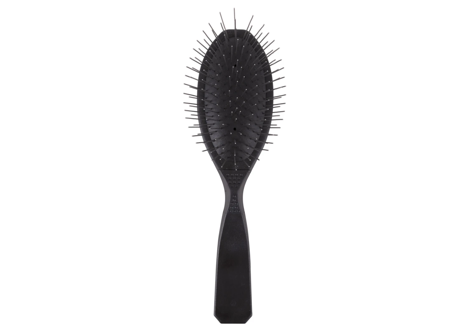Instructions for use: Long coats-Gently brush with a light, long stroke, brushing beyond the ends of the hair tip to avoid static and breakage. For best results brush the hair in layers. Start at the bottom by parting the coat horizontally and holding the un-brushed portion up with your free hand. Work methodically upwards, keeping your wrist straight to avoid contact with the dogs skin. Curly coats-Brush in the direction of coat growth and then against it using light, long strokes. Harsh coats-Brush the coat in the direction of coat growth then against if necessary to remove mats and dead hair. Pay special attention to areas that are prone to matting, like behind ears, on the loins and under the legs. Use a coarse comb to check for any remaining mats after brushing. The Ultra Pro pin brush is ideal for use after bathing while blow drying the coat. Use light, long strokes with and against the direction of coat growth. Brush slowly to avoid static build-up. If the coat is matted, use the Ultra Pro pin bush in combination with a Matbuster de-matting tool. To prevent mats and tangles, the dog’s coat should be regularly bathed, treated with a conditioner and brushed daily.