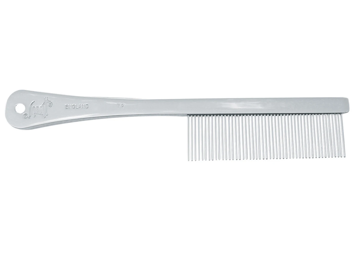 Spratts combs are all brass backed with extra dense chrome plating for show-dog coats. The teeth are individually hand set. Spratts combs come in a wide variety of different models and sizes, ensuring that there is a suitable comb for all breeds