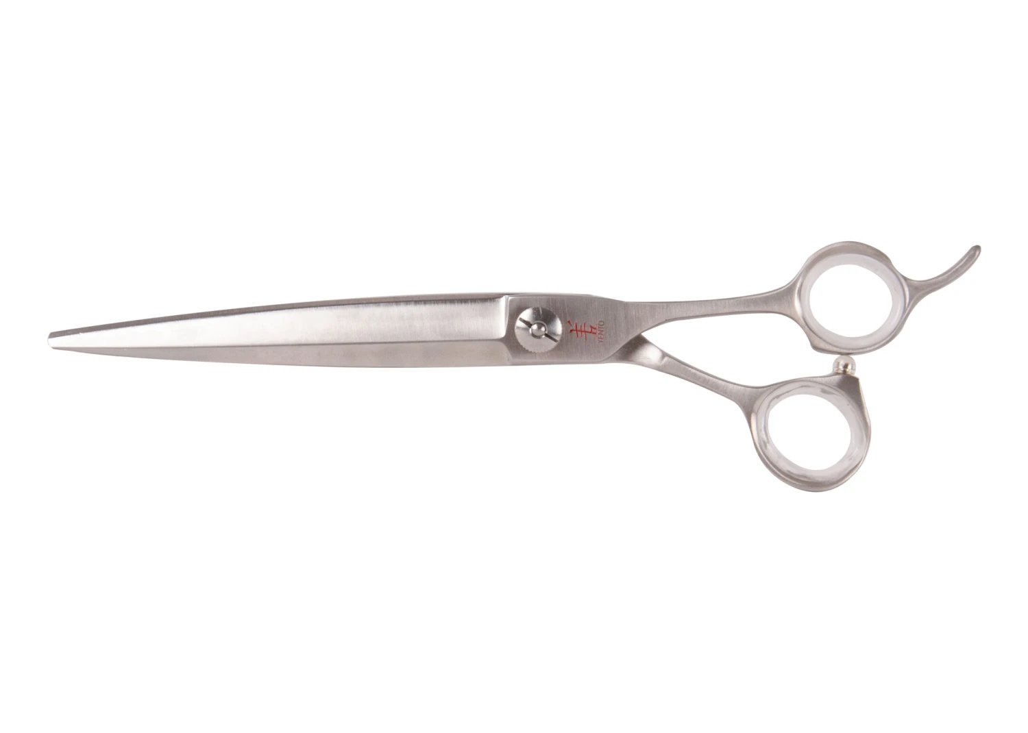 The Yento Ergo line shears are handcrafted using the finest Hitachi 440C Japanese steel with a Rockwell hardness of 60. With their super smooth, silent cutting action, these shears slice effortlessly through thick coats. Each shear features a special tension screw for easy, accurate adjustment and an ergonomic offset handle for maximum comfort.
