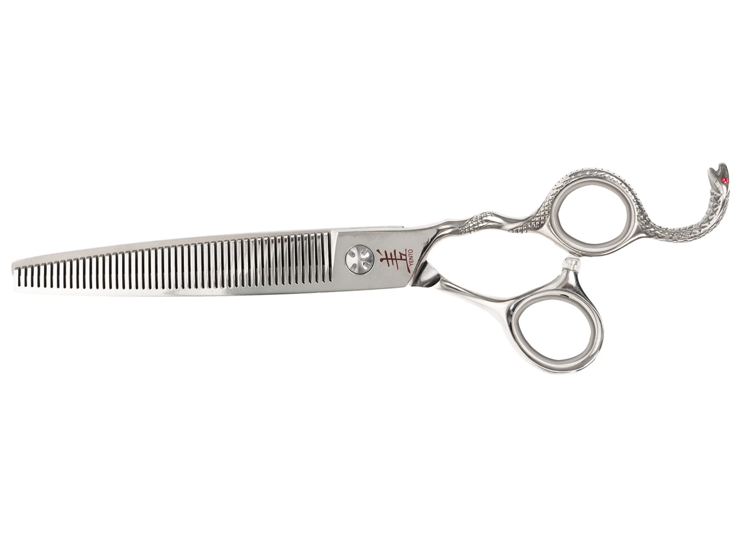 Yento Hi-Tech Cobra shears are forged from the highest quality Japanese 440C stainless steel with added Cobalt to achieve a Rockwell hardness of 61. These high quality cutting instruments are hand finished and polished by craftsmen that involves more than 200 different processes! There are 4 models in this Hi-Tech range characterized by the Cobra styled handle.