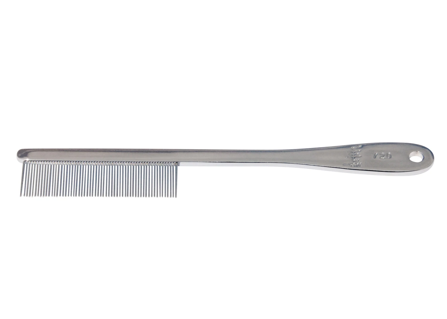 This fine-toothed comb is used for removing knots and tangles, for general combing or for the removal of fluffy undercoat. May also be used after brushing to check for any mats left in the coat. If necessary use an extra fine comb to be sure all mats have been removed. By removing dead hair, undercoat and dandruff the coat’s natural healthy shine will be restored.